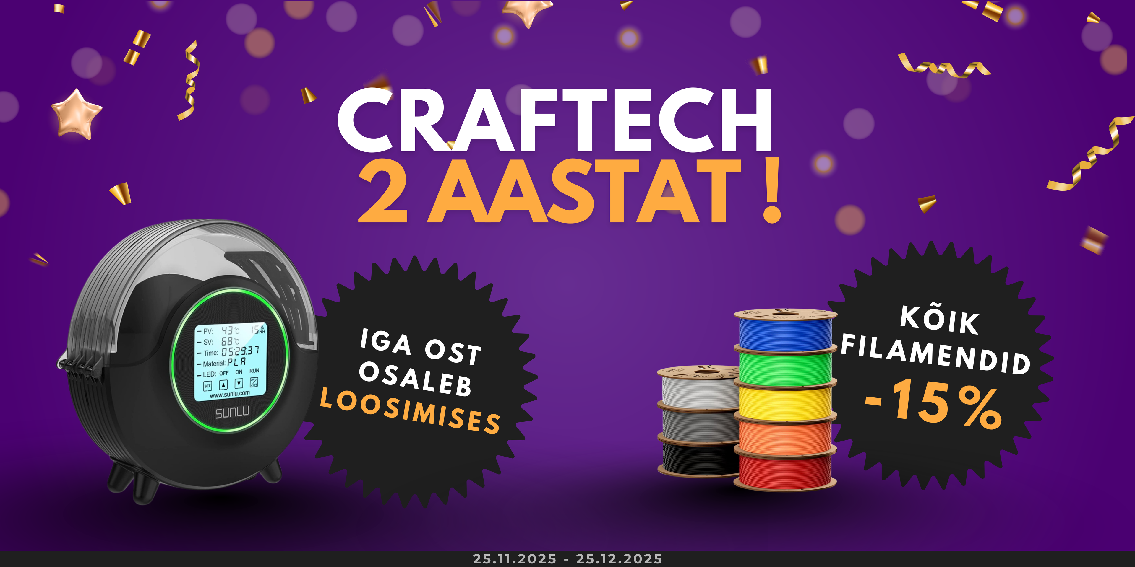 Craftech OÜ missioon on pakkuda klientidele kvaliteetseid 3D-printimisseadmeid ja -materjale, mis muudavad uuenduslike ja ainulaadsete toodete loomise taskukohaseks ja lihtsaks. Meie ettevõte sai alguse visioonist luua veebipood, kust igaüks leiab oma ideede elluviimiseks vajalikud vahendid. Me laiendame pidevalt oma valikut, pakkudes lahendusi, mida teistest poodidest on raske leida. Meie eesmärk on aidata teil realiseerida oma kõige ambitsioonikamaid projekte, muutes 3D-printimise mugavaks ja kõigile kättesaadavaks.